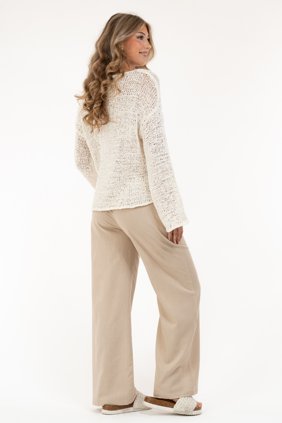 Tröja Vendela vanilj är en stilfull och bekväm stickad tröja med en avslappnad passform som gör den till ett perfekt vår plagg. Den lediga designen ger en luftig känsla, medan de utställda ärmarna tillför en feminin touch. Den rundade halsen och de nedsänkta axlarna förstärker den avslappnade men stilrena looken.
